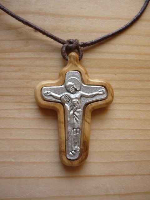 Croix de l'unité en métal plaquée sur bois d'olivier. Hauteur totale : 5 cm. Vendue avec le cordon.